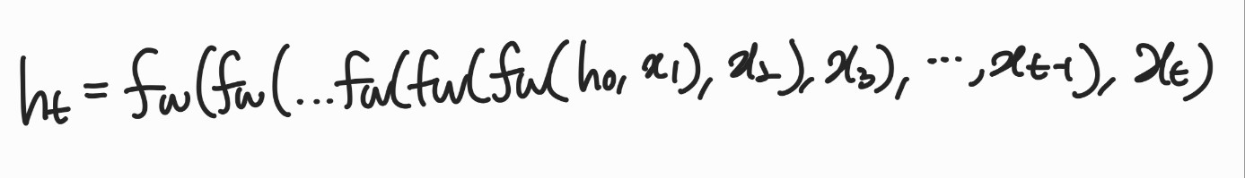 $$ h_{t}=f_{w}(h_{t-1}, x_{t}) $$