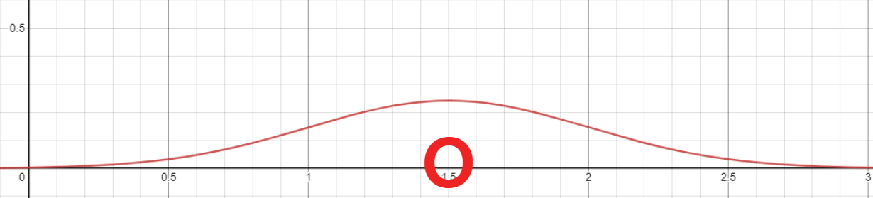 - 여기서 1.5가 1, 2의 평균이 될 확률이 높다는 것을 알 수 있음
