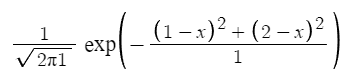 $$ f(x_{1},x_{2})= (\frac{1}{ \sqrt{2\pi \cdot 1}})^{2}exp(- \frac{(x_{1}-\mu_{0})^{2}(x_{2}-\mu_{0})^{2}}{2 \cdot1}) $$