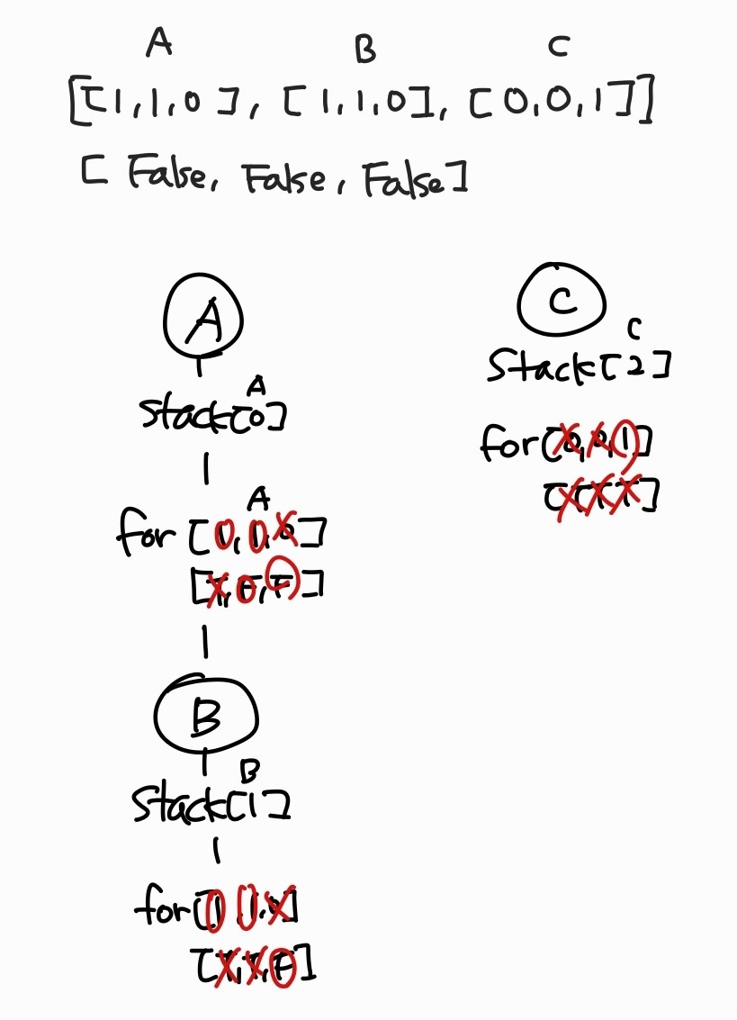 | 3 | [[1, 1, 0], [1, 1, 0], [0, 0, 1]] | 2 |