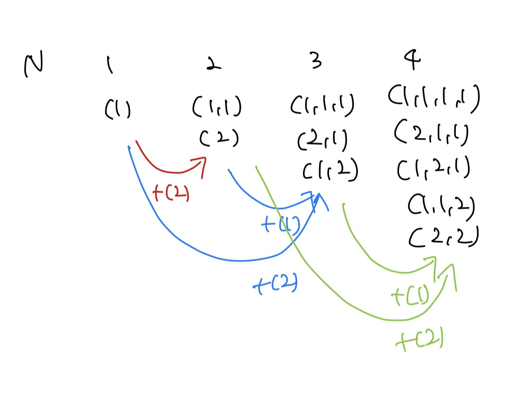 - N이 주어졌을 때 만들 수 있는 모든 가짓수