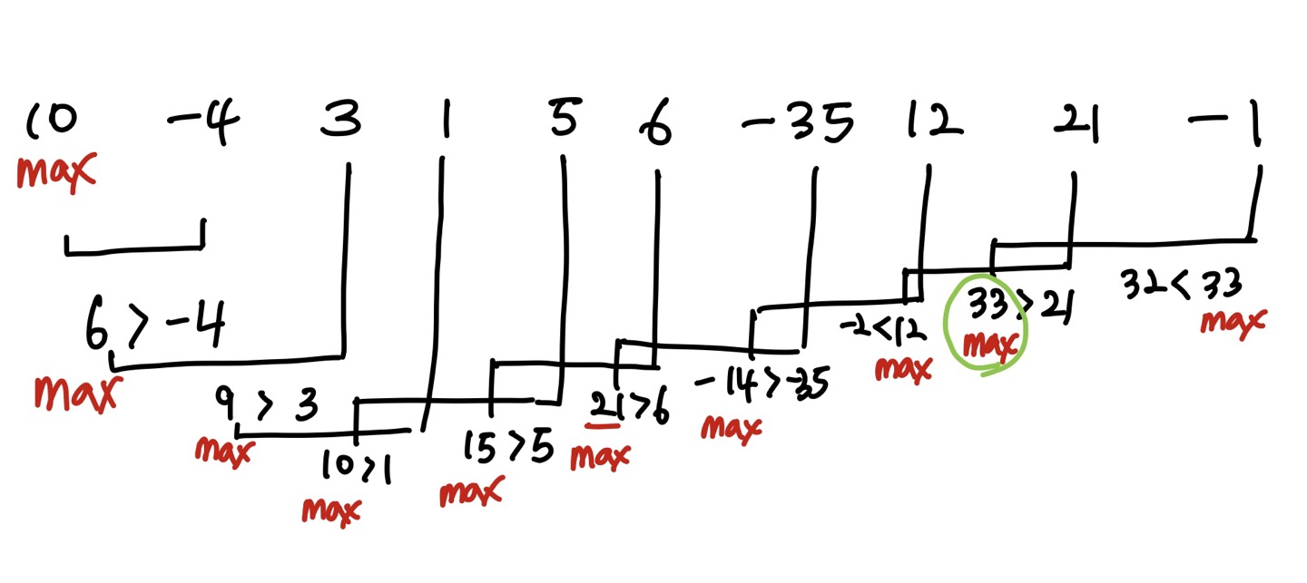 n개의 정수로만 이루어진 임의의 수열이 있을 때 연속된 몇 개의 수를 선택해서 구할 수 있는 가장 큰 합을 구하려고 한다.