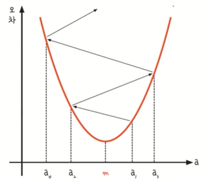 a값을 무한대로 키우거나 작게 하면 오차는 무한대로 커진다. 이러한 관계를 이차 함수 그래프로 표현이 가능하다.