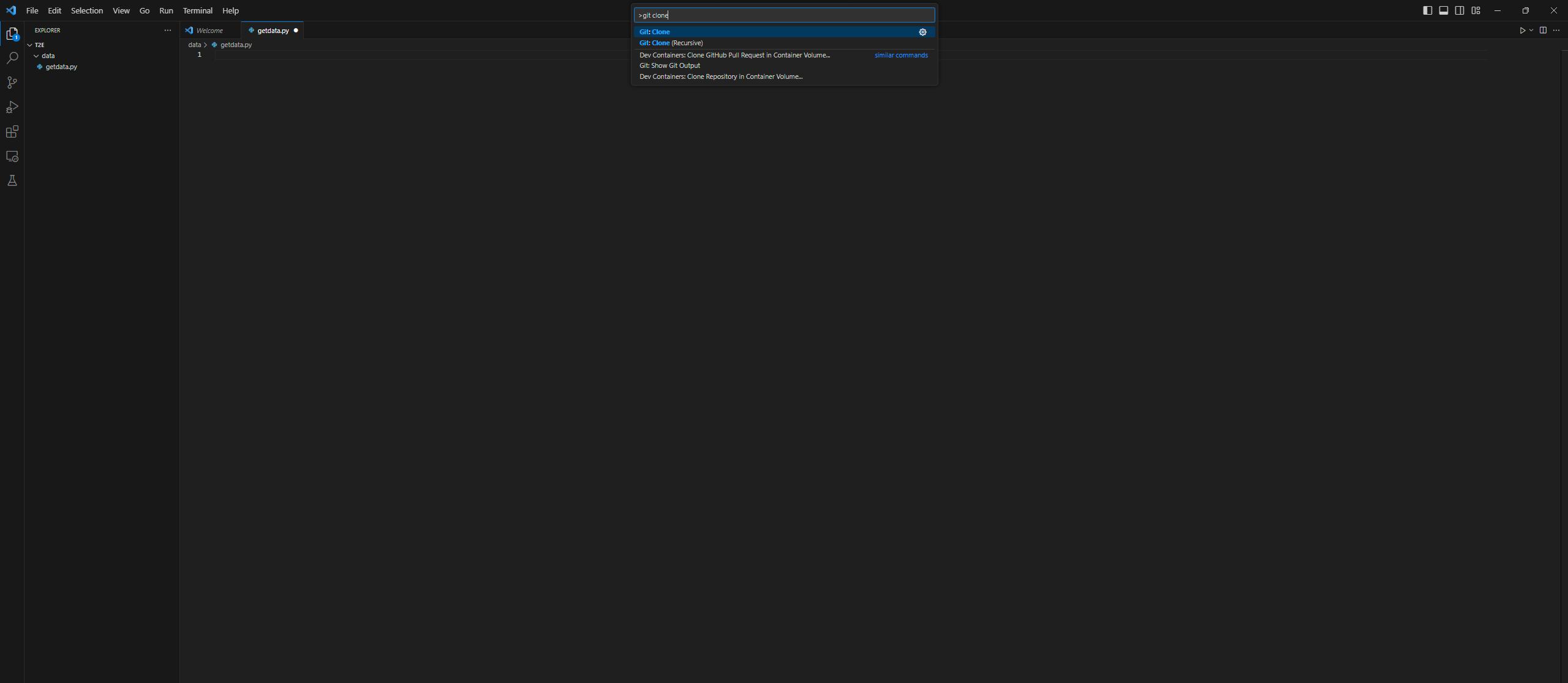 Vscode에 들어가서 "F1"을 눌려서 git clone을 검색한다.