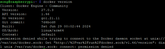 song 계정에서 root 권한 없이 docker 실행 가능하게 함