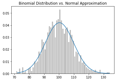 plt.title("Binomial Distribution vs. Normal Approximation")